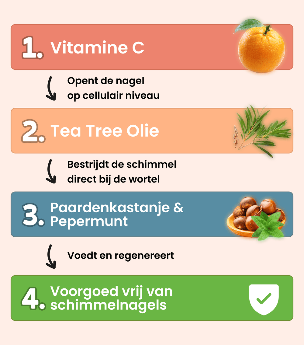 Om de nagelschimmel te bestrijden waar hij ontstaat, namelijk bij de wortel, zijn deze 3 stappen nodig: